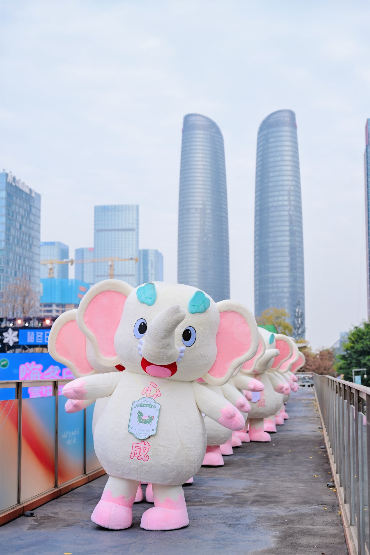 此次登陸成都的“福象巡游”,堪稱冬日文旅盛宴的點(diǎn)睛之筆,其文化內(nèi)核源自峨眉山極具代表性的祥瑞符號——六牙白象。圣潔白象煥新蛻變萌趣福象六六,依托“象”與“祥”的諧音之妙,圣潔莊重的六牙白象幻化身為萌態(tài)十足的小福象,既延續(xù)了白象承載的吉祥庇佑之意,更將“峨眉耍雪・心象事成”的內(nèi)涵詮釋得淋漓盡致,成為冬日里最治愈的祥瑞福氣天團(tuán)。“耍雪”是峨眉山冬季獨(dú)有的極致浪漫,金頂皚皚白雪的圣潔壯闊、林間戲雪的肆意歡騰,是鐫刻在每個人心中的冬日終極向往;“心象事成”則暗藏滿滿期許,飽含人們對冬日美好景致的熱切期盼,以祥瑞之氣傳遞祝福,寓意奔赴峨眉耍雪尋福之人,皆能心愿順?biāo)臁⑷f事勝意。27只小福象精準(zhǔn)復(fù)刻六牙白象的靈動神韻,從仙氣繚繞的峨眉仙山走進(jìn)煙火繁盛的都市街巷,讓仙山的靜謐禪意與都市的熱鬧活力完美交融。