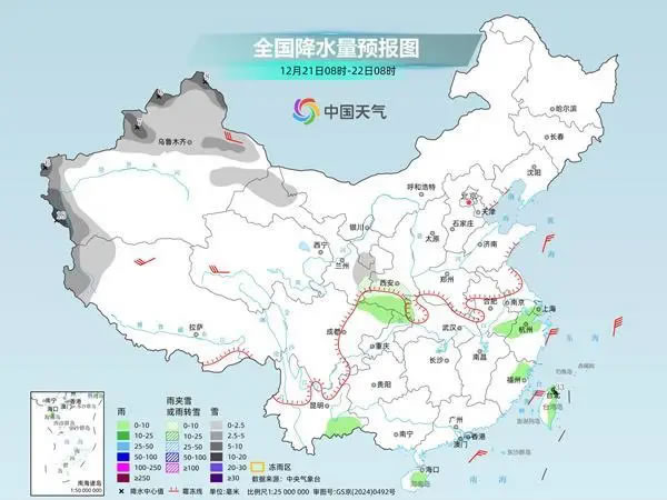 今天,內(nèi)蒙古、東北地區(qū)雨雪范圍將快速縮減,西南地區(qū)東部至長江中下游等地降雨則明顯增多。中央氣象臺預(yù)計(jì),內(nèi)蒙古東北部、黑龍江北部和東南部、新疆南疆西部山區(qū)、西藏西北部、青海東部、甘肅南部、陜西南部、湖北西部山區(qū)、重慶東北部等地部分地區(qū)有小到中雪或雨夾雪,其中,新疆南疆西部山區(qū)、湖北西部山區(qū)、重慶東北部等地局地有暴雪。江淮大部、江漢、江南北部和西部、西南地區(qū)東部、華南北部和西部、海南島、臺灣島東部等地部分地區(qū)有小雨,其中,湖北西部、湖南西部、重慶中東部、貴州東北部等地部分地區(qū)有中雨。