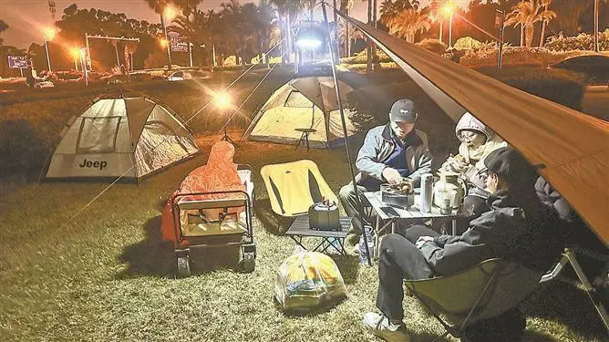 跨年夜的同安環(huán)東浪漫線,露營熱潮伴著夜色升溫。