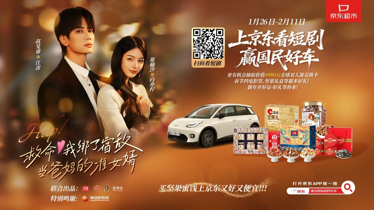 其中,京東旅行順應(yīng)當(dāng)下短劇熱門趨勢,與京東超市堅(jiān)果蜜餞品類攜手創(chuàng)新內(nèi)容營銷合作模式,聯(lián)合橫店影視城和沃隆、三胖蛋、臻味、京覓等堅(jiān)果品牌,聚焦春節(jié)團(tuán)圓、父母催婚等節(jié)點(diǎn)話題打造的定制輕喜微短劇,在呈現(xiàn)闔家歡樂的劇情中,自然融入京東堅(jiān)果品類心智,并聯(lián)合站內(nèi)看短劇贏國民好車的互動活動,為品類品牌的年貨節(jié)營銷打開新的思路,實(shí)現(xiàn)曝光-心智-引流-轉(zhuǎn)化的營銷閉環(huán)。