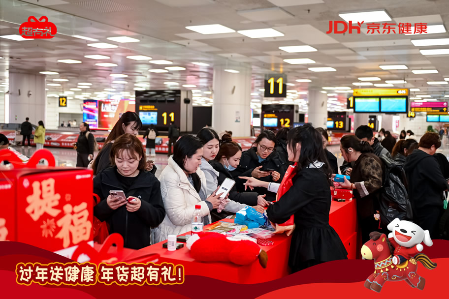 京東旅行攜手京東健康“超有禮”IP在此次年貨節(jié)中,通過全鏈路航空場景營銷實(shí)現(xiàn)了品牌與用戶的深度互動,圍繞“機(jī)場快閃—主題登機(jī)口—主題航班—行李傳送帶驚喜事件”構(gòu)建貫穿出行始終的品牌體驗(yàn)閉環(huán),以創(chuàng)新的事件組合與場景融入,將健康關(guān)懷自然嵌入用戶春運(yùn)旅程。這一策略高度適配春節(jié)出行場景,不僅精準(zhǔn)觸達(dá)返鄉(xiāng)、探親、商旅等多類用戶群體,更通過具象化的健康禮品派發(fā)、溫情驚喜體驗(yàn)等,持續(xù)強(qiáng)化“春節(jié)送健康禮”的消費(fèi)心智,成功將健康禮贈塑造為新年問候的情感載體與品質(zhì)之選。