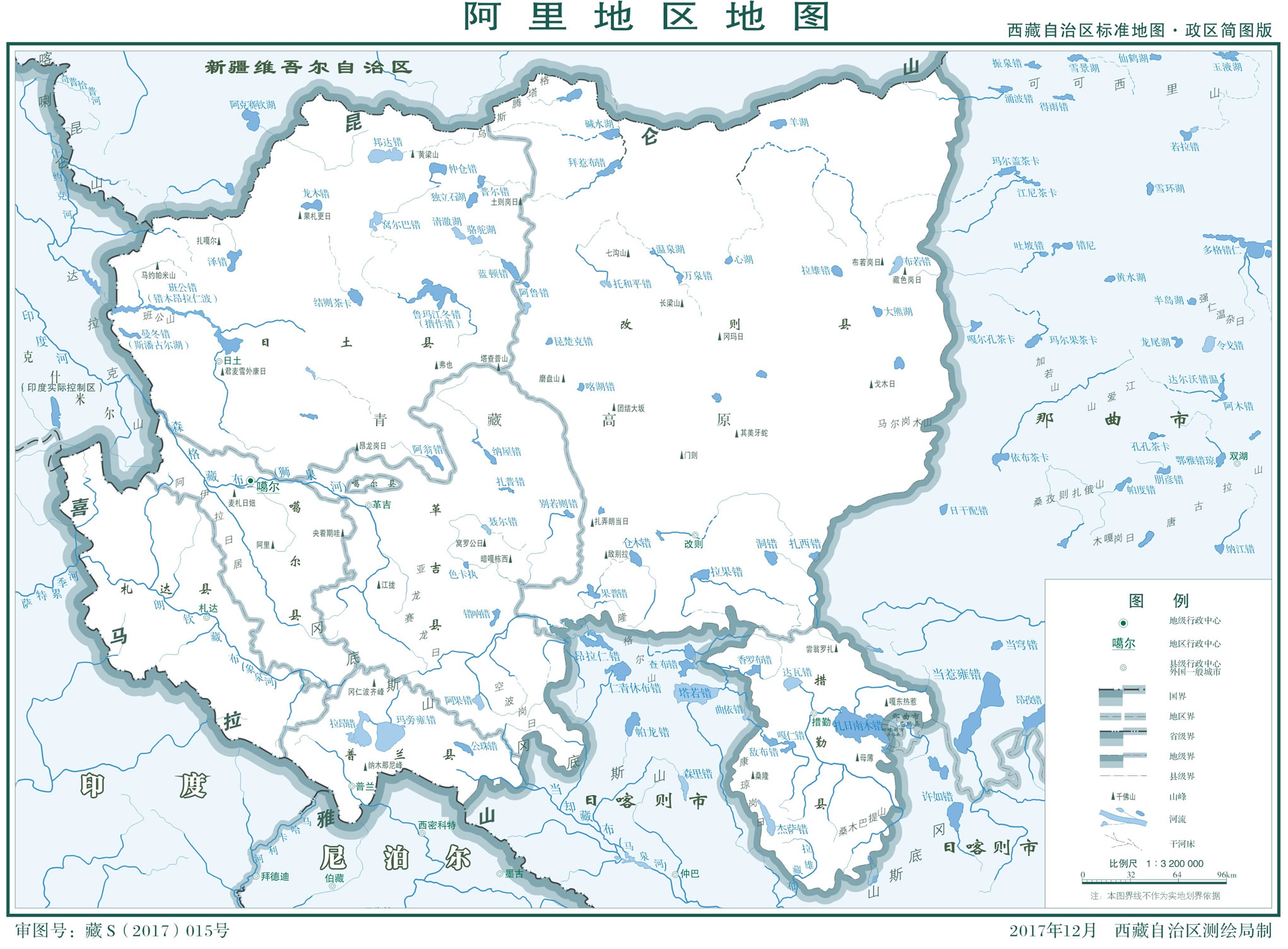 阿里地區(qū),西藏自治區(qū)轄地區(qū),古稱“羊同”“納里”“俄力思”,位于中國西南邊陲、西藏自治區(qū)西部、青藏高原北部(羌塘高原),北接新疆維吾爾自治區(qū)和田地區(qū)、巴音郭楞蒙古自治州,東臨那曲市、東南依日喀則市,西南和西部與尼泊爾、印度、克什米爾為界;總面積33.717萬平方千米。截至2022年10月,阿里地區(qū)轄7個縣,地區(qū)行政公署駐噶爾縣獅泉河鎮(zhèn)。阿里地區(qū)常住人口12.3萬人,居住著藏、漢、蒙、回、維等34個民族。