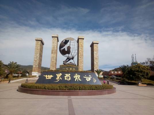 太陽歷文化園內“一海一瀑四廣場,六寨八區(qū)一條龍”巧布于林壑崗巒之間,神秘幽深,是彝州“人類、自然博物館”的一個重要組成部分,是“九九”世博會重要景點分展項目之一。