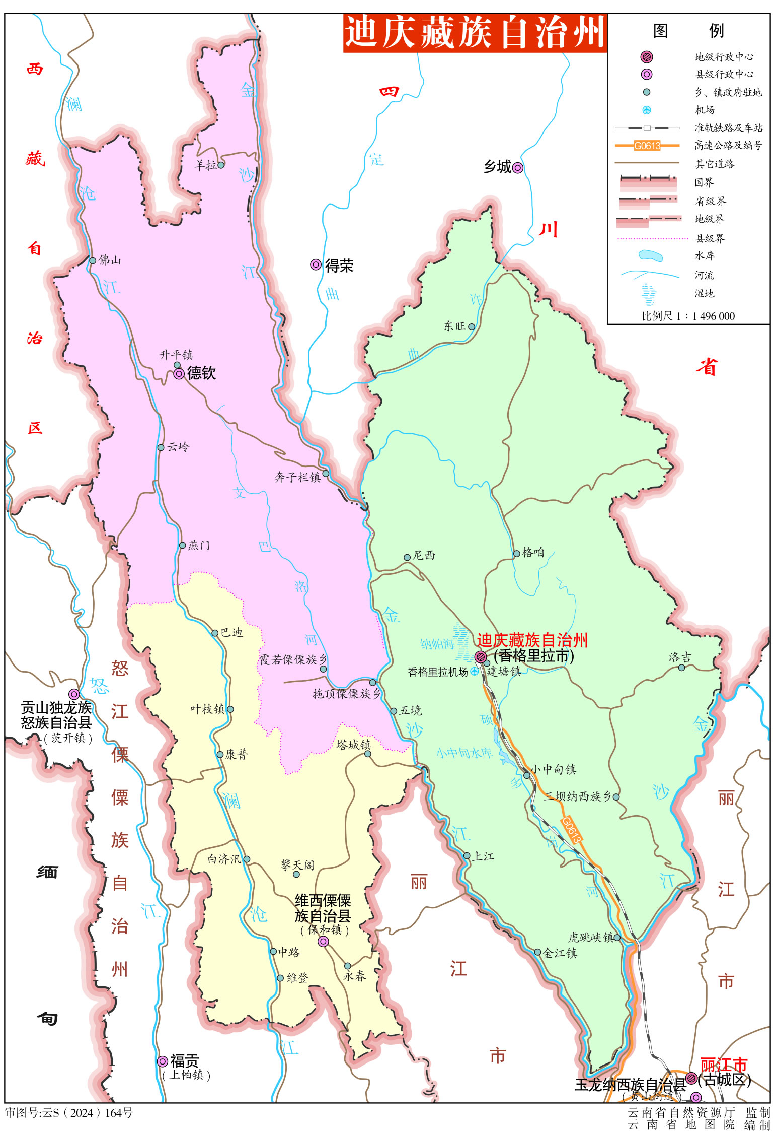 迪慶藏族自治州轄1個(gè)縣級市、1個(gè)縣、1個(gè)自治縣: