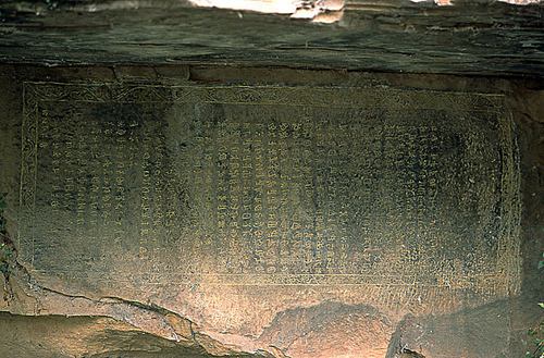 鏨字巖摩崖石刻,位于屏山鎮(zhèn)發(fā)明村北側掌鳩河西岸上,由二方漢文石刻和一方彝文石刻組成。兩方漢文石刻“武定軍民府土官知府鳳世襲腳色記”和“鳳公世系”記載的事實真實可靠,在許多問題上比《明史土司傳》、《土官底薄》、《云南通志》以及《武定府志》、《祿勸縣志》等書詳備。彝文石刻與上述二石刻并列,寬2m,高82cm,直書橫排,共33行,563字,四周刻葵葉雙線邊框,這方彝文摩崖,主要記述了羅婺部(鳳氏)十四代世襲土知府350多年的譜系。它與貴州大方縣的千歲衢碑同為最古老的彝文碑記。