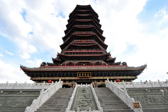 靖寧寶塔位于寥廓山頂,屬曲靖城市最高點(diǎn)的地標(biāo)性建筑。靖寧寶塔占地9997平方米(13畝)、總投資7000萬元,分為主塔建設(shè)和室外環(huán)境配套建設(shè)兩部分。主題建筑面積7427平方米,建筑立面為明清仿古式樓閣造型,主塔為9層,底層為四邊形,二層以上呈八邊形布置,每層收分60厘米,塔總高81.6米,塔主題由塔基、塔身、塔剎三部分組成。