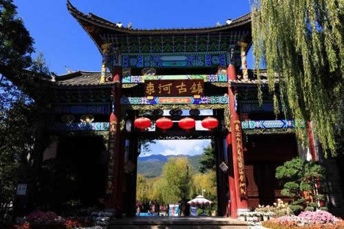 束河古鎮(zhèn)位于北緯26度55分,東經(jīng)100度12分。束河古鎮(zhèn)依山傍水,民居房舍錯落有致,面臨田園阡陌;北瞰玉龍,東南瞻象山、文筆,四時風(fēng)光變幻,尤其村頭兩處泉源,其中一潭水,稱為“九鼎龍?zhí)丁,又稱“龍泉”。在麗江所有景區(qū)的核心部位,是游覽麗江古城、玉龍雪山、瀘沽湖、長江第一灣和三江并流風(fēng)景區(qū)的樞紐點。