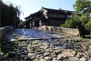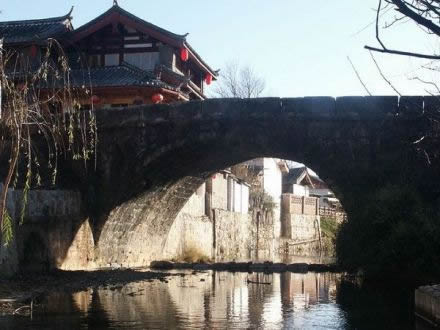 長25米、寬4.5米、高4米,全部由石塊壘砌,列為麗江古石橋之最,可見束河在麗江歷史上的經(jīng)濟(jì)文化格局中所占的重要地位。青龍橋的橋面經(jīng)過數(shù)百年風(fēng)雨的洗刷使它變得斑駁蒼老,卻不失它的英雄氣勢和莊嚴(yán)厚重感,站在這里,你也許會聽見馬蹄的聲音在回響。