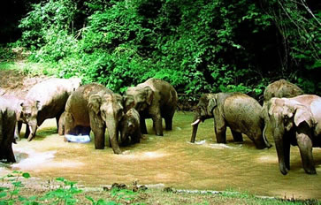 步行道旁的森林中,處處可見(jiàn)野象出沒(méi)和活動(dòng)的痕跡,幸運(yùn)的游客或許還在傍晚之際或黎明之時(shí)看到林間漫游的野象群。在野象谷,游人可觀看大象表演節(jié)目,這里現(xiàn)有馴養(yǎng)的大象16頭,這是我國(guó)第一所馴象學(xué)校,這些訓(xùn)練有素的龐然大物,會(huì)向游客鞠躬,表示歡迎,會(huì)作頭頂?shù)、腳朝天的倒立,會(huì)合著音樂(lè)的旋律跳舞、能過(guò)獨(dú)木橋、會(huì)用象鼻作"踢"球表演……游客可騎在象背上或坐在象鼻上,與象合影,甚至可躺在地上,讓大象用腳給你按摩……它們的靈性乖巧,令你不得不拍案叫絕。 |