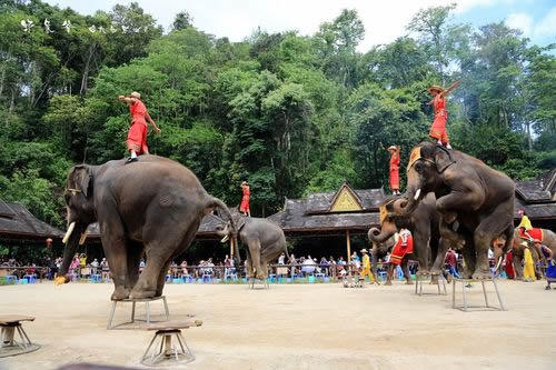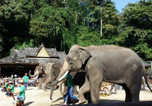游客到野象谷,白天可觀賞訓(xùn)練過(guò)的大象表演節(jié)目,夜晚可一睹從森林走到此地覓食的真正野象風(fēng)姿。