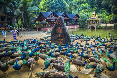 通過(guò)漂流,獲得利用自然、征服自然的快慰。此區(qū)還建有一座孔雀園,飼養(yǎng)著400多只綠孔雀,讓人觀賞孔雀開(kāi)屏,與孔雀留影紀(jì)念。西雙版納觀光旅游區(qū),分布有大面積的熱帶溝谷雨林,游客可順游覽道深入西雙版納林中探秘。雨林內(nèi)有猿猴棲息,有彩蝶繁殖,西雙版納犀鳥(niǎo)、野牛等珍稀動(dòng)物也偶有出現(xiàn)。幸運(yùn)的游人會(huì)遇到猿猴攀枝嬉戲、西雙版納犀鳥(niǎo)在林中覓食的情景。