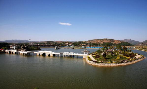 太陽湖位于縣城南郊,東臨巧威公路過境線,西接鳴樓自然村,占地面積320畝。園區(qū)整體布局主要由水體湖面、小島嶼、環(huán)湖公路和商業(yè)區(qū)四個(gè)部分組成。太陽湖呈蝴蝶型鑲嵌于城郊平壩中央,水體面積為16萬平方米,湖面水深2.2米。湖畔有島嶼3個(gè),在島上設(shè)置了八角亭及長(zhǎng)廊等江南風(fēng)格園林設(shè)施,拱型廊橋?qū)⒐聧u與小島連為一體,形成湖中有島、小島四面迎水的秀美景觀。
