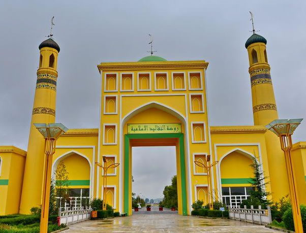伊斯蘭風(fēng)情城是結(jié)合當(dāng)?shù)氐锰飒?dú)厚的自然環(huán)境和回族聚居條件建設(shè)起來的,占地334畝,其中水體面積100畝,中軸線長(zhǎng)1000米,除了入口廣場(chǎng)區(qū)外,還按南北空間系列分布著宗教文化展示區(qū)、演示區(qū)、水上游樂區(qū)和休閑購物區(qū),“一軸五區(qū)”就是伊斯蘭風(fēng)情城的總體布局。伊斯蘭教信奉真主,認(rèn)主獨(dú)一,反對(duì)偶像崇拜,禁止以物喻主。信教群眾膜拜真主,每天從早到晚有5次虔誠禮拜的儀式,稱作“禮五番”,到了周五,信教群眾就近到清真寺聚眾禮拜,稱作“注姆爾”,俗稱“主麻”。禮拜之前,每個(gè)人都必須沐浴干凈,務(wù)必常帶“大凈”,勤洗“小凈”,因而用于洗浴的茶壺也就成了信奉伊斯蘭教的一種普通標(biāo)識(shí)。