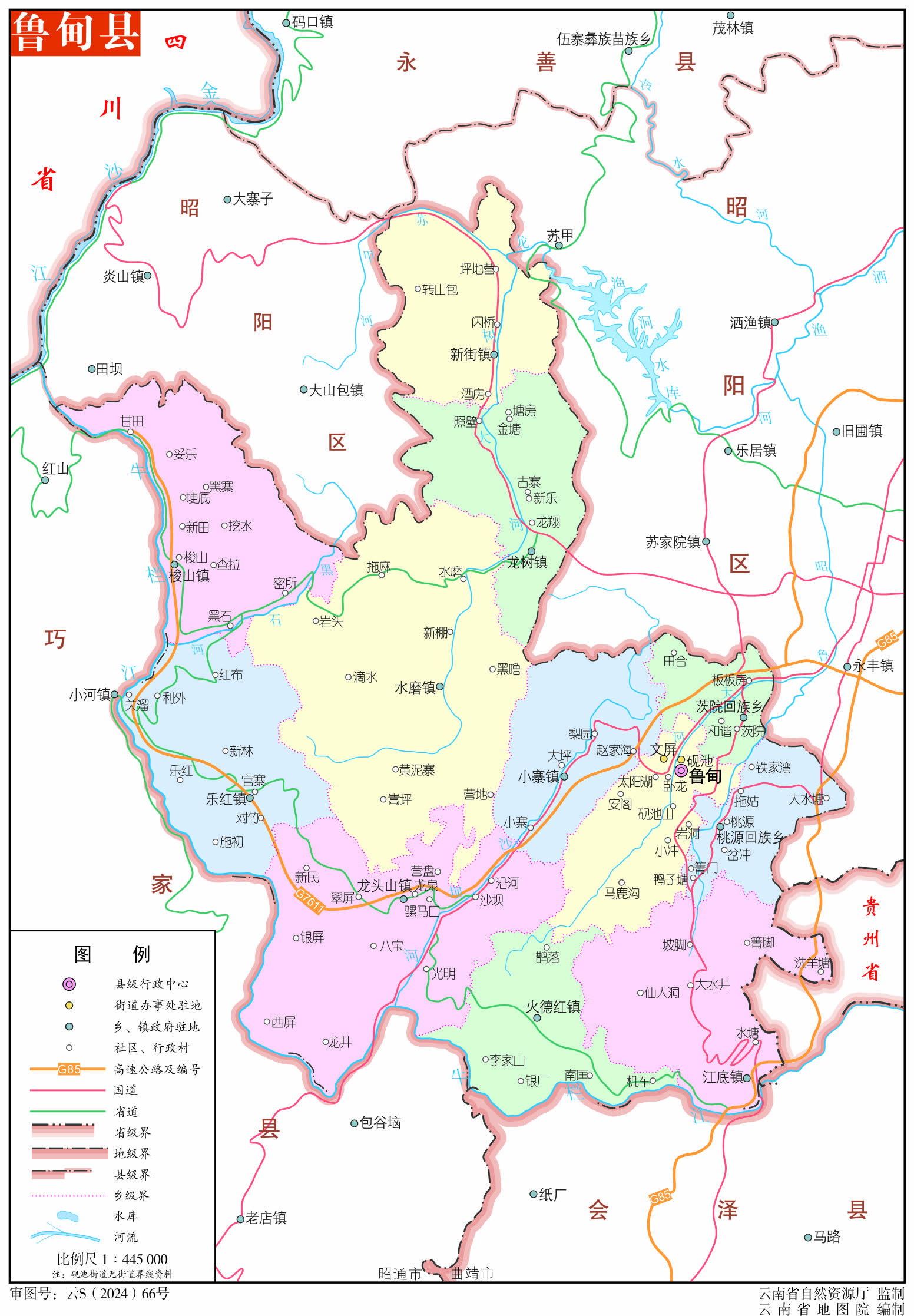 位置境域 魯?shù)榭h,位于云南省東北部,昭通市西南部,牛欄江北岸。東北與昭通市接界,東南與貴州省威寧彝族回族苗族自治縣毗鄰,南部和西部與會(huì)澤、巧家兩縣隔牛欄江相望?h人民政府駐文屏鎮(zhèn),距昭通市政府所在地昭陽區(qū)27公里,距省會(huì)昆明市310公里?h境東西橫距50公里,南北縱距60公里。面積1484平方公里。