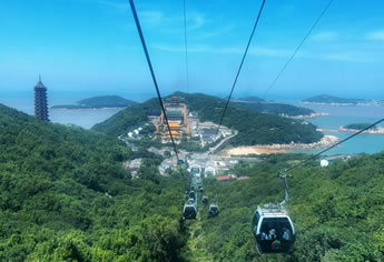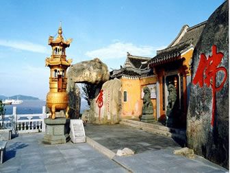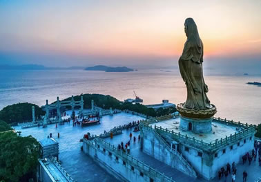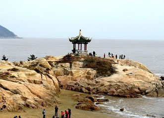 普陀山,位于浙江省舟山市普陀區(qū),杭州灣南緣,舟山群島東部海域,相傳是觀世音菩薩教化眾生的道場(chǎng)。普陀山地形呈菱形狀,是舟山群島1390個(gè)島嶼中的一個(gè)小島,形似蒼龍臥海,面積12.52平方千米,與舟山群島的沈家門隔海相望,素有“海天佛國(guó)”、“南海圣境”之稱,南北長(zhǎng)8.6千米,東西寬約3.5千米,岸線長(zhǎng)30千米。中部佛頂山天燈臺(tái)最高,海拔291.2米,向四面延伸,西為茶山,北為伏龍山,東為青鼓壘山,東南為錦屏山、蓮臺(tái)山、白華山,西南為梅岑山,主峰均在100至200米間,連綿起伏。