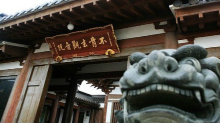不肯去觀音院,位于紫竹林。不肯去觀音院是當(dāng)年慧鍔法師供奉不肯去觀音的地方,是普陀山觀音道場(chǎng)的發(fā)源地,F(xiàn)殿內(nèi)供仿唐式十一面觀音像,寺院西側(cè)筑“三十三觀音靈場(chǎng)”長(zhǎng)廊,內(nèi)塑日本33座供奉觀音的寺院主尊。