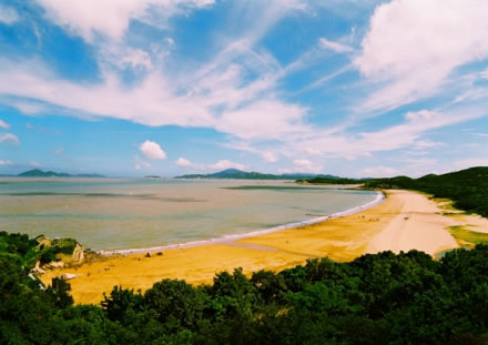 千步金沙長(zhǎng)1370米,寬400余米,是舟山群島第二大沙灘,位于舟山普陀山。千步金沙又稱塔灣金沙,據(jù)傳在塔灣南側(cè)龍?zhí)犊釉ㄓ幸皇,港灣倒映塔影,故而得名。千步金沙屬?xì)型沙質(zhì),細(xì)軟純凈。